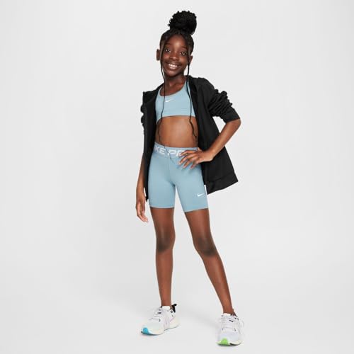 Nike Pro Big Kids' (Girls') Dri-FIT 5" Shorts (Denim Turquoise/White, FB1081-464) Size X-Small 7