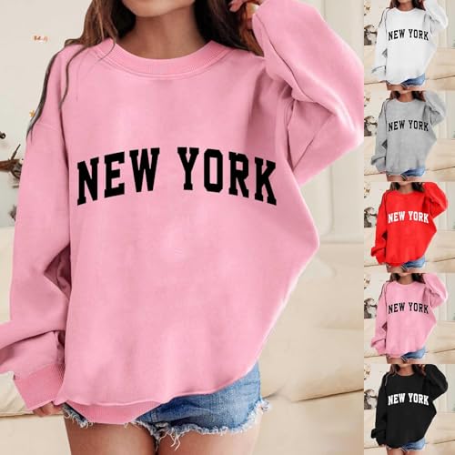 New York Sweatshirts for Girls Graphic Letter Print Pullover Trendy Oversized Hoodies Long Sleeve Casual Loose Tops 3-12T 3