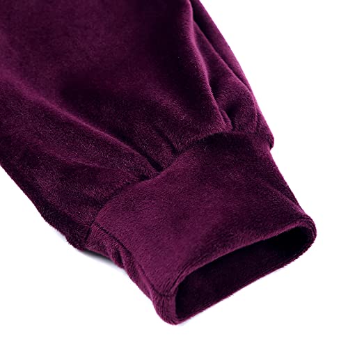 • Solid Velour Long Sleeve Zipper up Hooded Sweatshirts, Elastic Waist Sweatpants with Two Pockets.