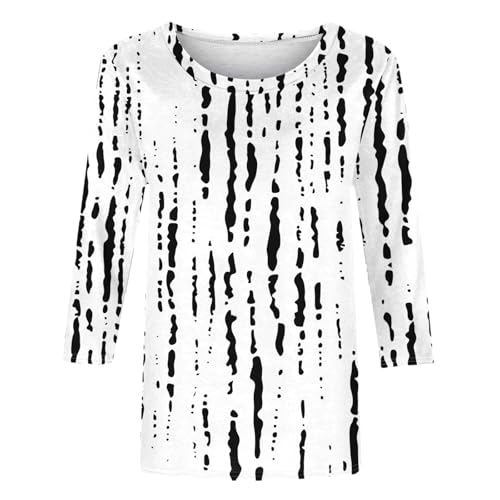 Womens Tops Dressy Casual Crew Neck Pullover 3/4 Length Sleeve Tunic Tops Retro Cute Graphic Tees Cotton Fall Clothes 3