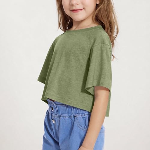 • [Versatile Style for Everyday Wear]: Styled with a classic solid color, crew neck and short sleeve, this t-shirt offers a timeless look suitable for any casual occasion such as home, school, holiday, vacation, athletics and outdoor activities, our girls summer tops could easily pair with jeans, shorts and sneaker to create a simple but eye-catching look