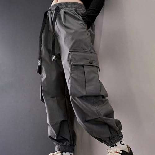 HOT ! Cargo Pants for Girls Kids Baggy Sweatpants Hip Hop Streetwear Drawstring Elastic Waist Casual Joggers with Pockets