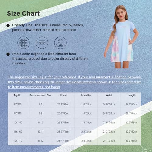 YEAHDOR Kids Girls Short Sleeve Tie-Dyed Dress Summer Casual Sundress Tennis Workout Sport Dress Activewear 1