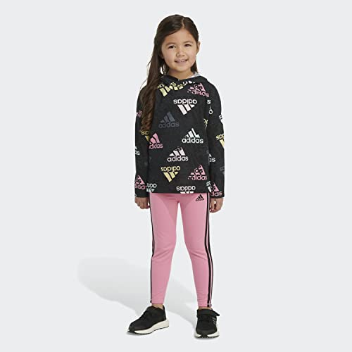 adidas Girl's Long Sleeve Graphic Hooded Tee and Printed Tights Set, Black with Multicolor, 6X 4