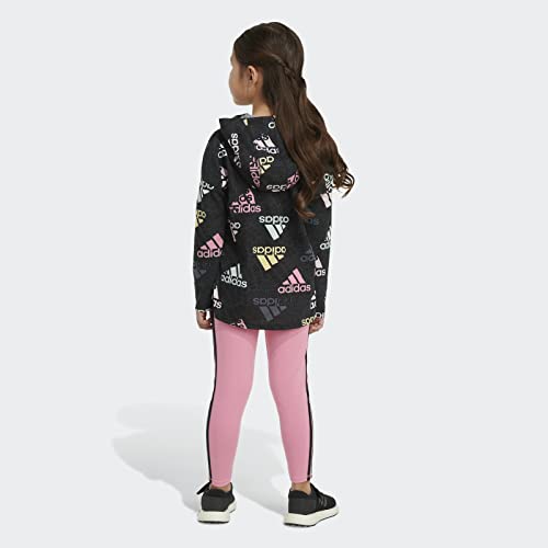 adidas Girl's Long Sleeve Graphic Hooded Tee and Printed Tights Set, Black with Multicolor, 6X 7