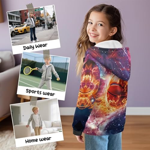 Kids Soft Fuzzy Zip-Up Hooded Sweatshirt Relaxed Long Sleeve Hoodie Jacket with Pockets for Boys or Girls Size S-XL 5