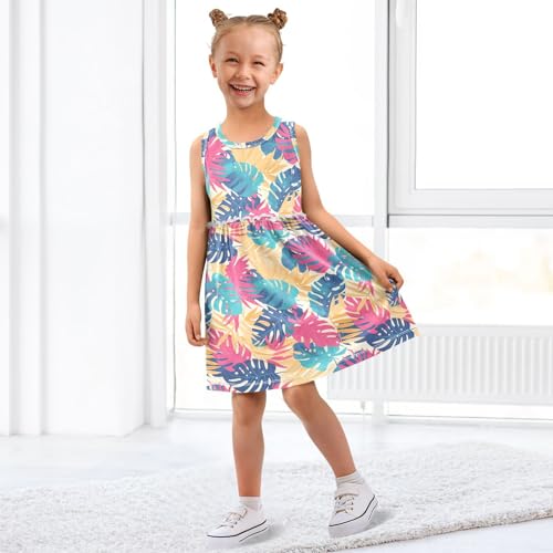 KLL Leaves Monstera Blots Girls' Tank Dresses Swing Jumper Skirt Comfy Outfits Crew Neck 6