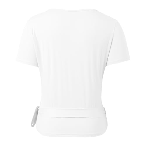 • 【Wrap Tops for Women Design】Designed to slim fit and flatter everyone, this ballet style crossover wrap top features a tie that wraps around the bodice and can be fastened to your liking at the back, front or side of the body. Elevate and add a feminine touch to your look.The flattering v neckline and adjustable tie up, giving you full control over the fit, flattering on the body, slim fit and flatter everyone.