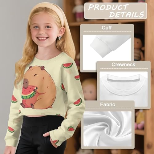 Girls Cropped Sweatshirts Crewneck Long Sleeve Shirts for Girls 5-14 Years Cute Kawaii Pullover for School 5