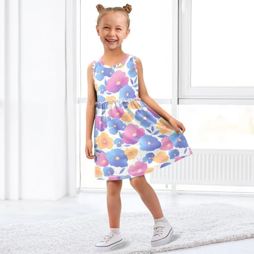 KLL The Garden Tricolor Pansy Flower Toddler Girls Party Dress Casual Sundress Summer Clothes O Neck 5