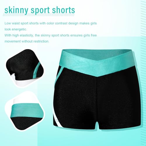 Kids Girls Low Waist Elastic Gymnastics Dance Sports Shorts Color Contrast Stretchy Skinny Tights Activewear 5