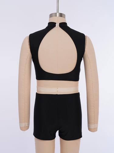 easyforever Girls 2-Piece Gymnastics Wear Shiny Metallic Crop Tank Top with Shorts for Ballet Dance Show Gold 14 Years 6
