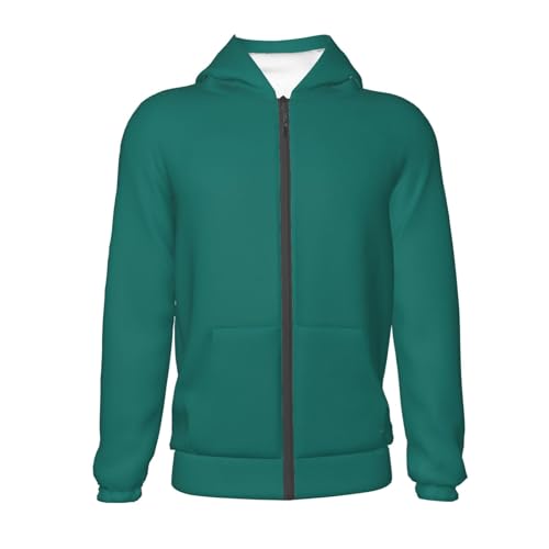 Solid dark green Print Girls Athletic Zip Up Hoodies,Sweatshirts with Pockets Long Sleeve Hooded Jackets, for 7-18 Y 3