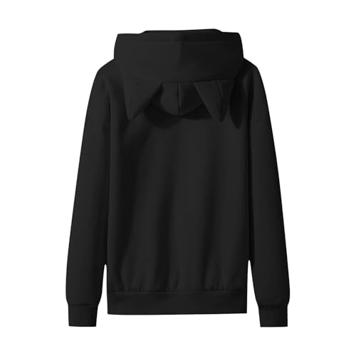HOT ! Girls Cute Cat Ear Hoodies Full Zip Up Preppy Oversized Sweatshirts Casual Long Sleeve Track Jacket with Pockets