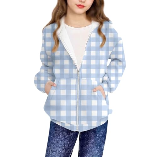 DDAPJ pyju Girls Plaid Zip Up Hoodie Jacket Teen Casual Long Sleeve Lightweight Sweatshirt Preppy Top with Pockets 4-12 Years 7
