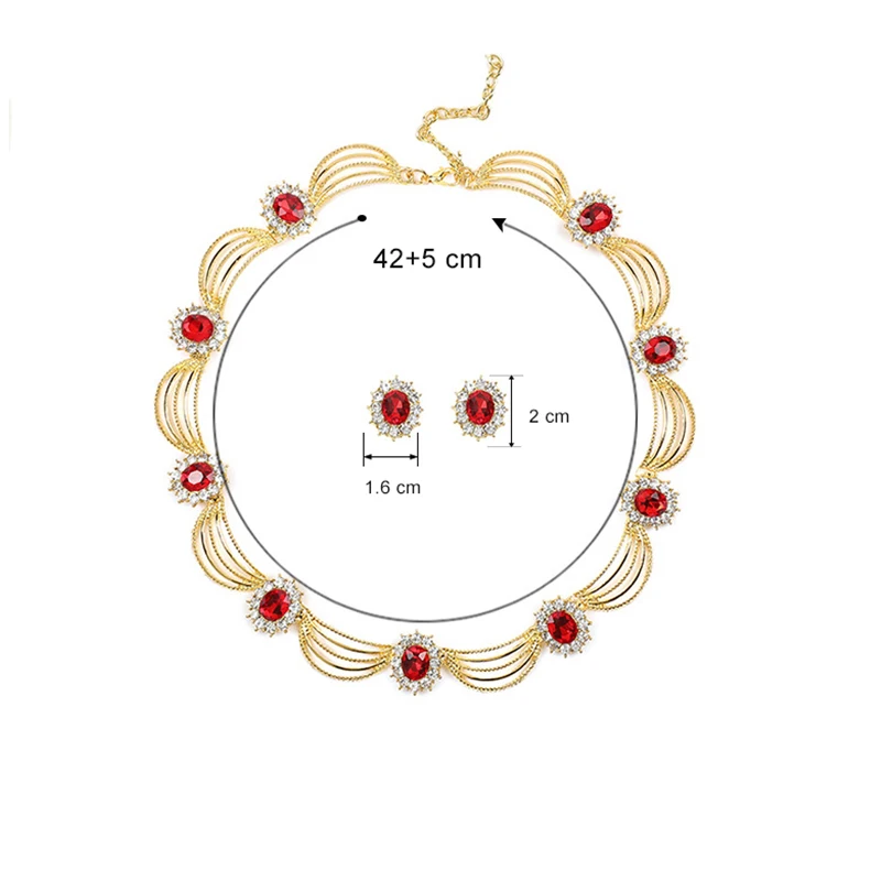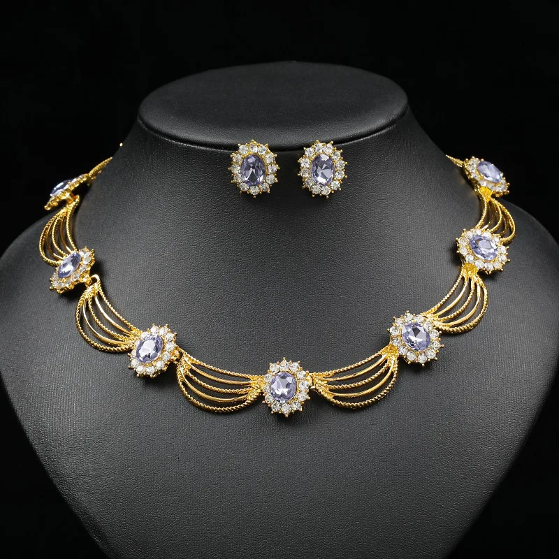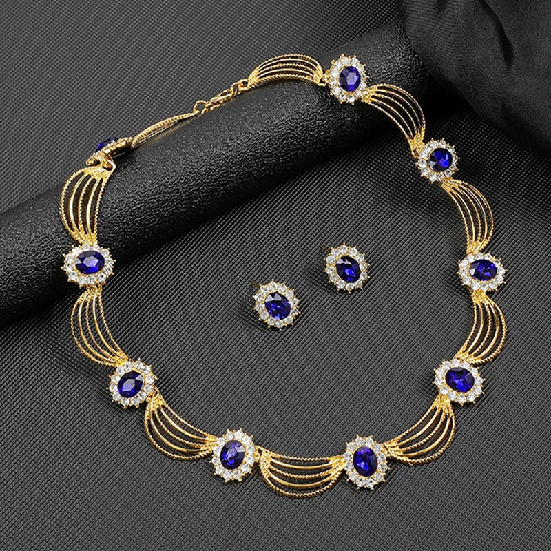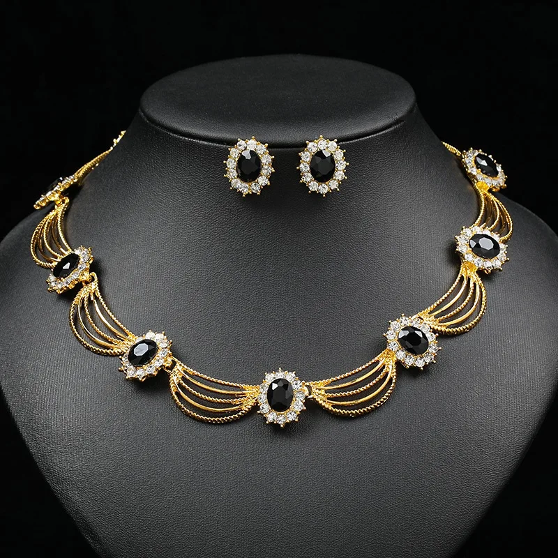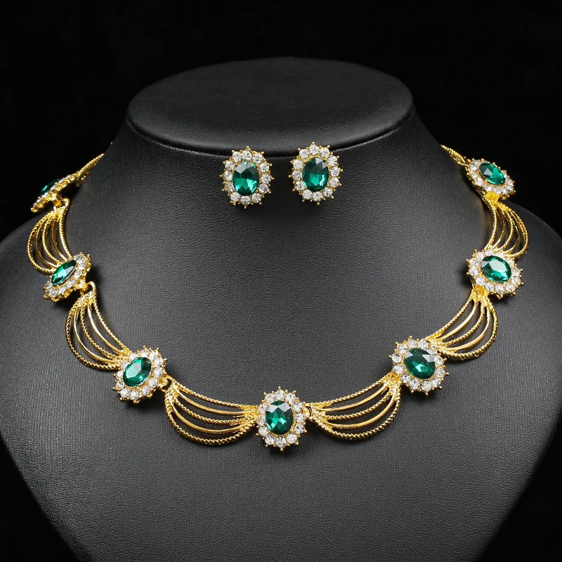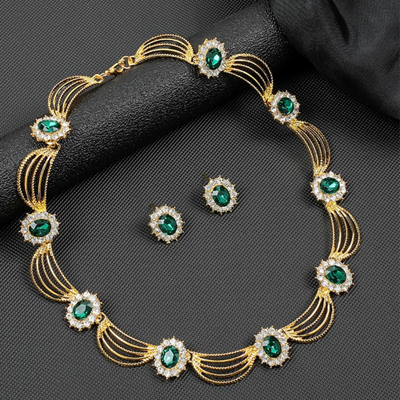 Luxury Jewelry Set Accessories Gold Color Black Green Crystal Rhinestone Matching Stud Earrings and Statement Necklace for Women