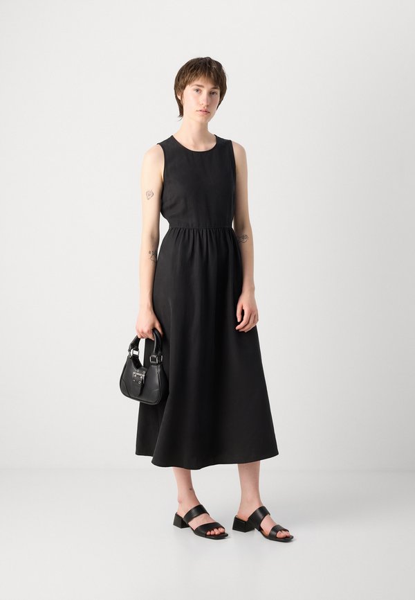 DRESS MIDI LENGTH ROUND NECK FLARED SKIRT CUT OUT AND GATHERING DETAIL - Day dress 1