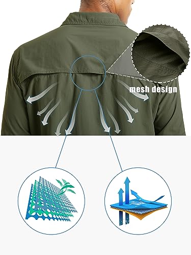 TACVASEN Fishing Shirt for Men, Long Sleeve Shirt Quick Dry Fit, Tactical Shirt Button Up, Work Shirt Lightweight Safari 4