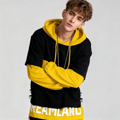 Mens Colorblock Hoodie Casual Patchwork Soft Cotton Pullover Letter Print japanese Hooded Sweatshirt with Design 6