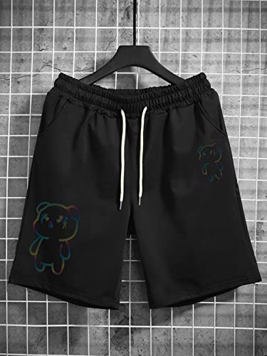 OYOANGLE Men's Reflective Expression Print Drawstring Waist Athletic Workout Track Shorts with Pockets 1