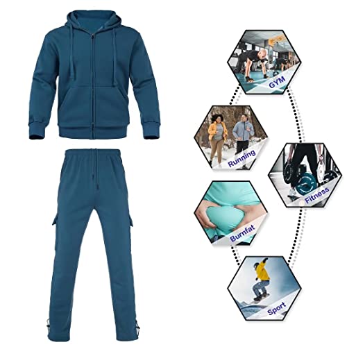 Men's Tracksuit Sets Outfit Activewear Full Zip Fleece Hoodie Jacket Cargo Sweatpant 2 Piece Casual Sweatsuit 2