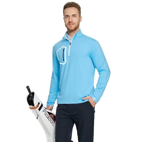 • PREMIUM FABRIC: Our quarter zip pullover men made of polyester and spandex fabric with brushed lining, providing moisture wicking, lightweight, warmth, 4-way stretch and breathable. Perfect for those sunny days when you're chasing that elusive hole-in-one.