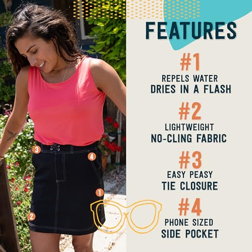 • Easy-on Easy-Off: Our new Sport Skirt features a sporty tie and velcro fly closure, making it incredibly easy to slip on and off. The elastic waist panels provide extra room for comfort, even if you gain a few vacation pounds. Perfect for active adventures!