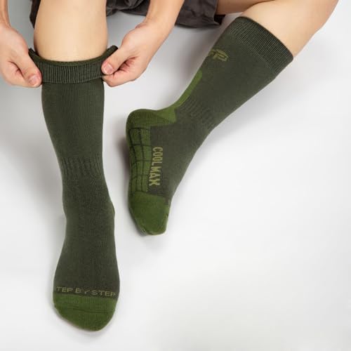 • 【Coolmax Quick-Dry Technology】 Engineered for performance, these Tactical Boot Socks feature advanced Coolmax fibers that wick moisture away from the skin, keeping your feet dry and comfortable during intense outdoor activities like hiking, rucking, or military training.