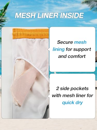 • Mens Swim Trunks With Mesh Lining:Our board shorts for men feature a built-in soft mesh liner that offers support without chafing. Designed for active lifestyles, these swim shorts are perfect for beach sports or casual strolls on the boardwalk.