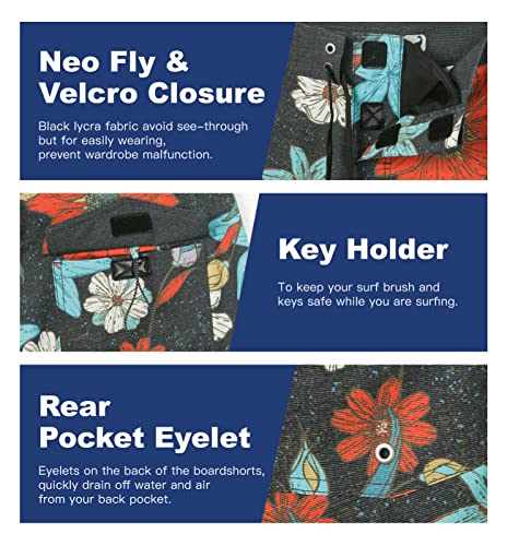 • 【Comfortable Design】Men's board shorts swimwear use hook & loop closure fly with ties to accommodate any movement, no mesh liner offers more freedom and hook-and-loop flap black pocket with key loop for a secure fit.
