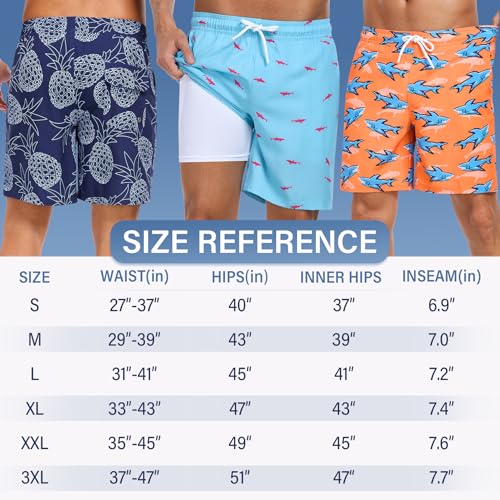 Mens Swim Trunks Swimsuits Board Beach Shorts with Compression Liner Quick Dry 7'' Inseam Board Trunks 1 Pack Swimwear 3