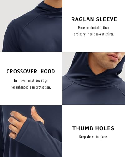• [Comfortable & Breathable] Lightweight, soft, 4-way stretch, moisture wicking fabric, crossover hood enhances neck coverage and sun protection,thumb holes and raglan sleeves brings you a comfortable sports experience. You'll feel cooler in summer