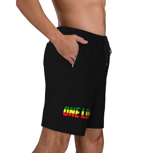 HOT ! One Love with Rasta Mens Swim Trunks Quick Dry Board Shorts 7" - Hawaii Beach Swimwear