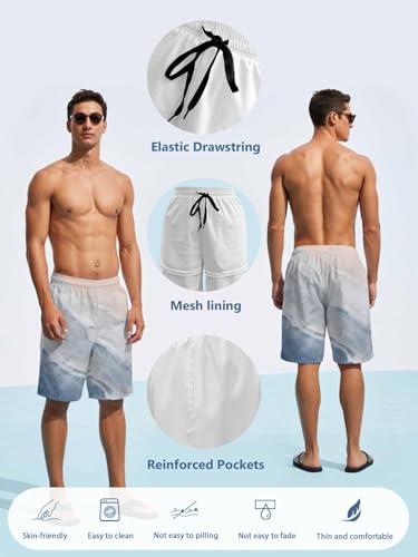 Mens Swim Trunks with Compression Liner,Coastal Blue Waves Men's Inseam Board Shorts Quick Dry Bathing Suit for Men/Boys 5