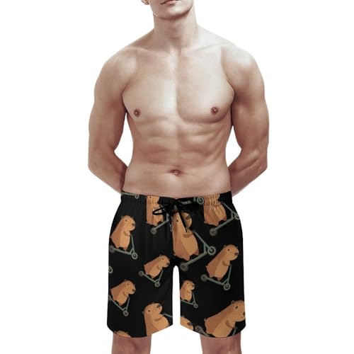 HOT ! Cute Capybara Riding Scooter Beach Shorts for Men Swim Trunks Quick Dry Bathing Suit Drawstring Hawaiian Short