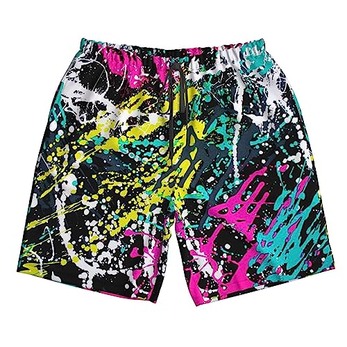 • 【Mens Summer Shorts Perfect Design】These Fashion Neon Paint Splatter Swim Trunks Men length bathing suits hits the knee not only for swimming but also for daily and athletics, drawstring goes through the elastic waistband for freely adjustment to fit and fixed of your waist.Men's Shorts for all kinds of sports and plus the durable soft lining for extra support brings you comfort and secure effect all day long.