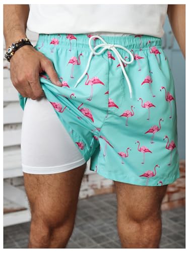 • Features: swimming trunks for men, with compression liner, elastic waistband with adjustable drawstring, 4 inch inseam, 2 side pockets for easy storage, funny flamingo print, beach shorts, bathing suit bottom