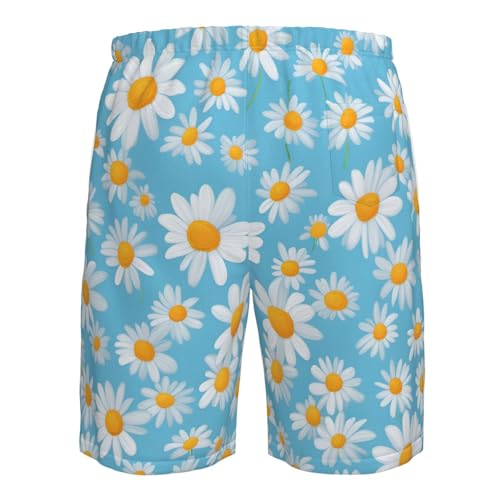 More information about White Daisy in Light Blue Background Print Men's Swim Trunks with Liner,Beach Shorts for Summer,Suitable for Water Activities