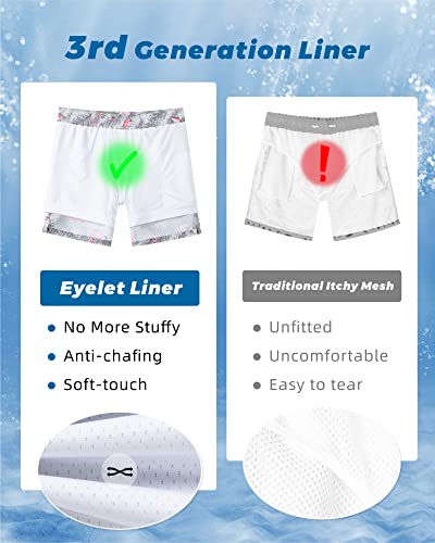 • Quick Dry 2 in 1 Mens Swim Trunks: The mens 7 Inch Inseam swim trunks of excellent fabric, which is made of polyester and spandex. Sweat-wicking shell fabrics help mens swim trunks dry quickly, keep you stay cool and flexible workout. Mens swimming shorts feature breathable, lightweight, durable and 4-way stretch.