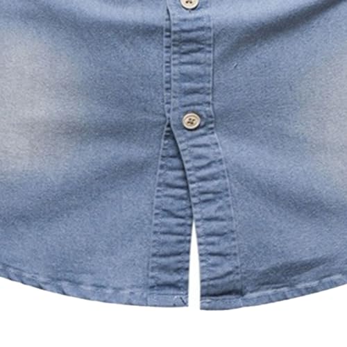 Men's Casual Button Down Denim Shirt Slim Fit Long Sleeve Lapel Jean Shirt Washed Denim Shirts with Chest Pockets 5