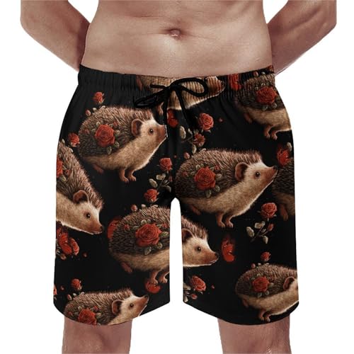 Hedgehog Butterfly Mens Swim Trunks Quick Dry Board Shorts Beach Swimwear Bathing Suits 7