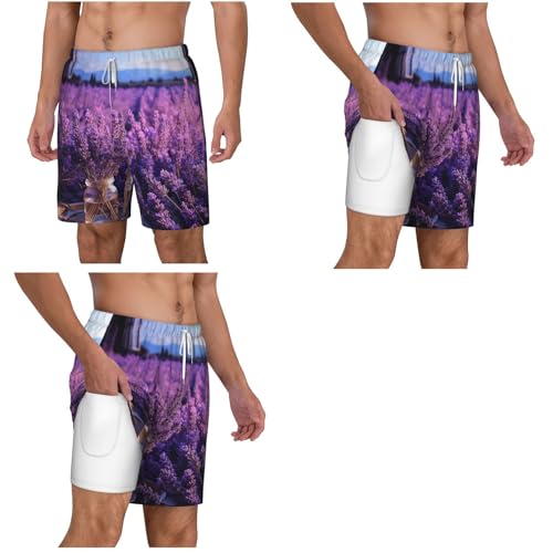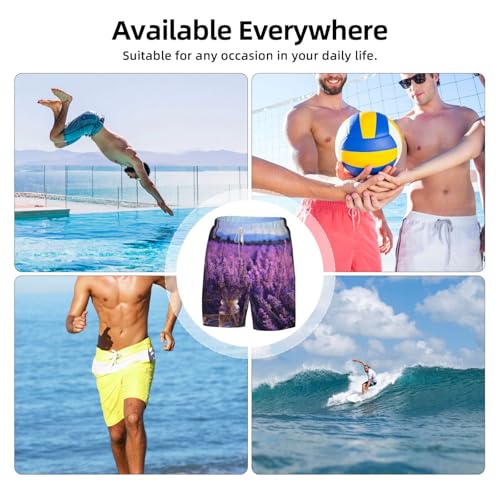 Men's Swim Trunks Quick Dry Board Shorts Romantic Lavender Beach Shorts with Pocket Bathing Suits for Men 5
