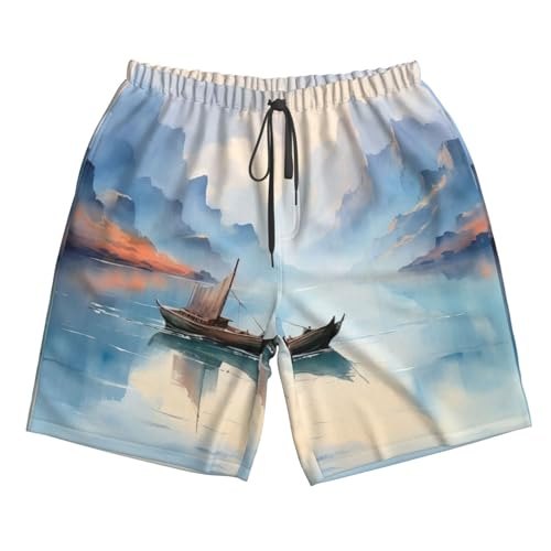 Fishing Scenic Print Mens Casual Shorts Drawstring Summer Beach Stretch Shorts Novelty Swimtrunks 7