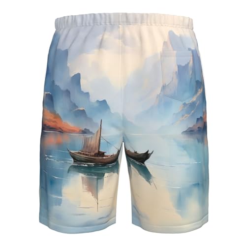 Fishing Scenic Print Mens Casual Shorts Drawstring Summer Beach Stretch Shorts Novelty Swimtrunks 1