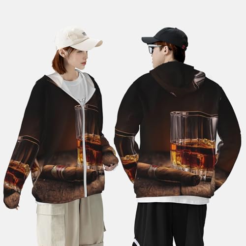• UV Protection: Our Cigar And Whiskey long sleeve sun shirts features cutting-edge UPF 50+ technology, effectively blocking UV rays to ensure robust sun protection during your outdoor adventures. Designed with a hood to protect the neck, and other sun-exposed areas. Ideal for extended outdoor activities