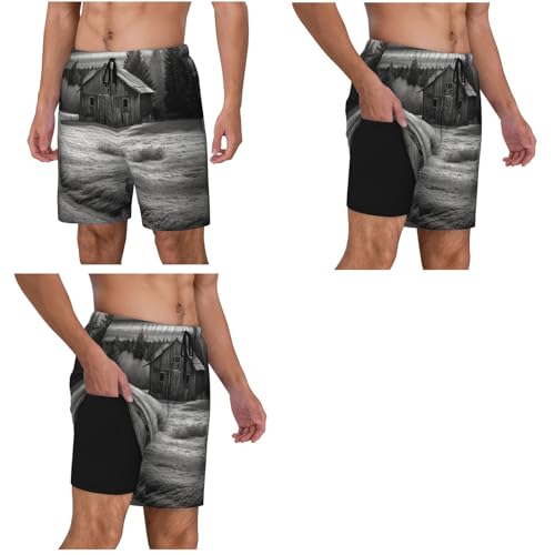 Men's Swim Trunks Quick Dry Board Shorts Barn Black and White Beach Shorts with Pocket Bathing Suits for Men 7