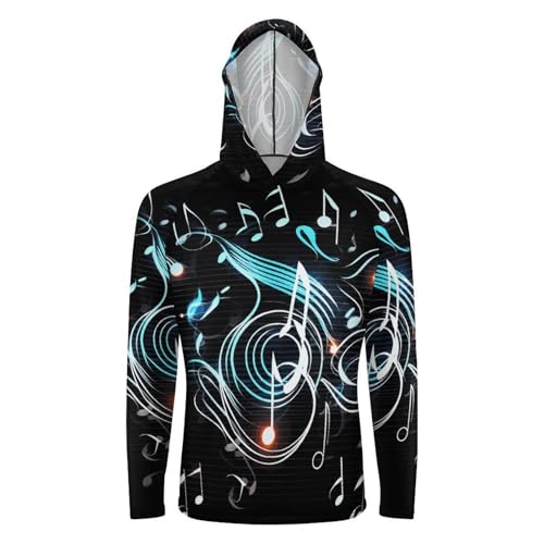 Men's Sun Shirts UPF 50+ Rash Guard Long Sleeve Sun Protection Hoodie Music Note Lightweight Shirt 3XL White 6