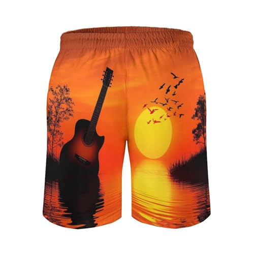 Abstract Guitar Men's Swim Trunks Quick Dry Board Shorts Hawaiian Beach Shorts With Pocket 2XL 3
