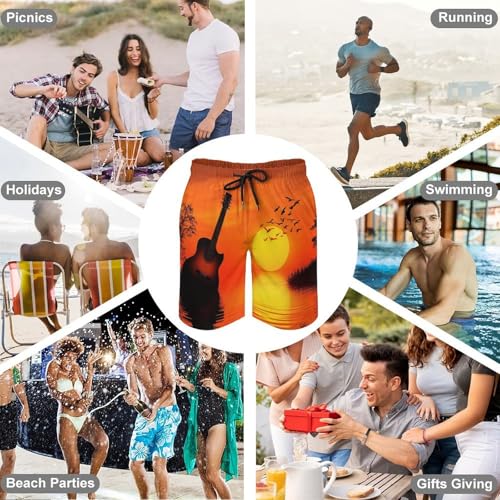 HOT ! Abstract Guitar Men's Swim Trunks Quick Dry Board Shorts Hawaiian Beach Shorts With Pocket 2XL