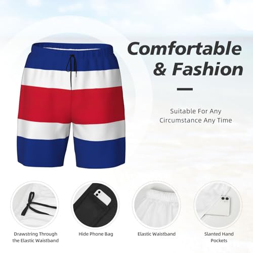 HOT ! Flag of Costa Rica Breathable Fit Trends Men's Swim Trunks Board Short with Waist Elastic Band Swimming Trunks